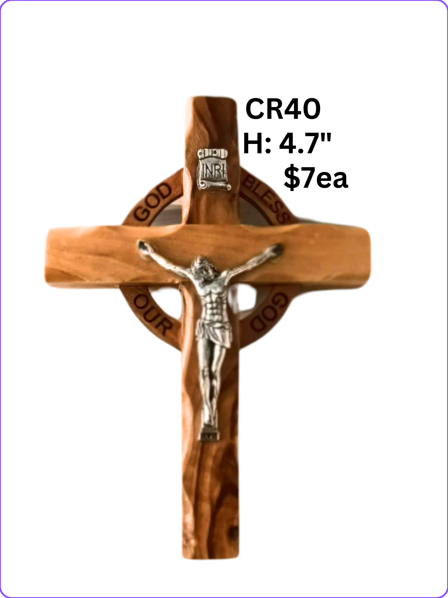 CR40: H:4.7" CELTIC CRUCIFIX OLIVE WOOD HOLY LAND "GOD BLESS OUR HOME"